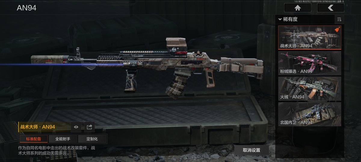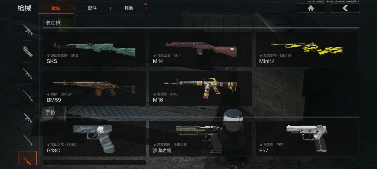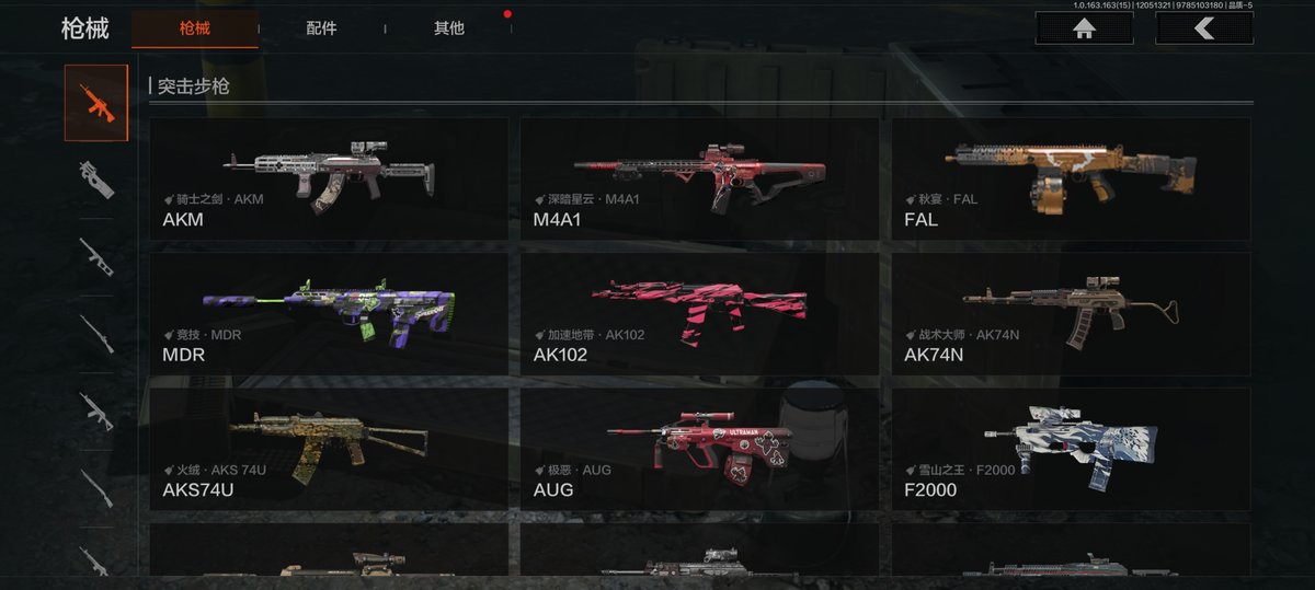 30级,历史最高段位:暗区传说【近战武器】:热能武器补牢,寒牙手刺,冬日冰镐,精英指虎,野战折刀,工兵铲,来战开山刀;【角色皮肤】:朱迪阿尔瓦雷兹,黑暗行者特摄戏服,鎏金街头套装,赤红雄狮作战套装;【手套】:禁忌力量手套;【突击步枪】:包络战术AKM,猩红抓痕AKM,骑士之剑AKM,火力倾泻AKM,潜渊蛇鳞M4A1,德尔塔小队M4A1,深暗星云M4A1,战术大师M4A1,秋宴FAL,竞技MDR,北国内卫MDR,加速地带AK102,战术大师AK74N,来战AK74N,火绒AKS74U,坚守AKS74U,龙影AKS74U,火力倾泻AUG,绿松石数码AUG,竞技AUG,战术大师AUG,极恶AUG,雪山之王F2000,炎夏浪花AR57,无声暗月AR57,骑士之剑ACE31,旗帜AEK,最后防线AEK,额外污染AEK,战术大师AN94,粉绒臻选AN94,火绒AN94,北国内卫AN94,虎纹Groza,绿松石数码Groza,虎纹FAMAS,青瓷涂层SCAR,飞鲨T951,绿松石数码T951,巡林客T951,森林迷彩T951,绿松石数码T951,虎纹T03,北国内卫AK12,沙海MCX,额外污染MC