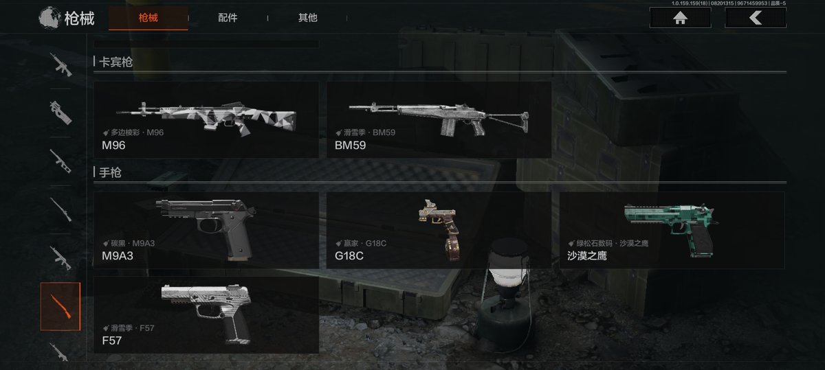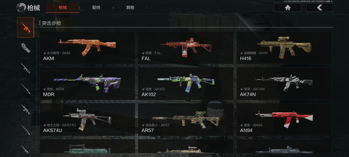 30级,历史最高段位:暗区传说【近战武器】:瑞兔折刀,冬日冰镐,涂鸦利刃,急袭弯刀,野战折刀,工兵铲,来战开山刀;【【角色皮肤】:森林守望特种服,黑金指挥官作战服,九号特遣,边境看守,荒漠蝰蛇,白狼连队作战服,街区守卫,特遣小队服;【突击步枪】:火力倾泻AKM,历战AKM,秋宴FAL,突围FAL,真实之眼FAL,自喷网格H416,竞技MDR,涂鸦AK102,棱光裂变AK102,来战AK74N,竞技数码AK74N,坚守AKS74U,火绒AKS74U,骑士之剑AKS74U,炎夏浪花AR57,涂绘猎人AR57,盛冬AN94,绿松石数码Groza,林地数码T03,深水浴池T03,森林迷彩T03,北国内卫AK12,绿松石数码9A91;【冲锋枪】:湖冰倒影MP5,森林迷彩MP5,涂鸦MPX,玄戈梨花MPX,无彩调色P90,兔年春季限定,滑雪季UMP45,自喷网格UMP45,多边棱彩MAC10,沙色Vector45,绿松石数码T85,竞技Vector9,都市黄Vector9,山地伪装Vector9,滑雪季Suomi;【射手步枪】:旗帜SVDS,钢铁数码VSS,白狼连队VSS,缟兵玄墨VSS,冰河碎影